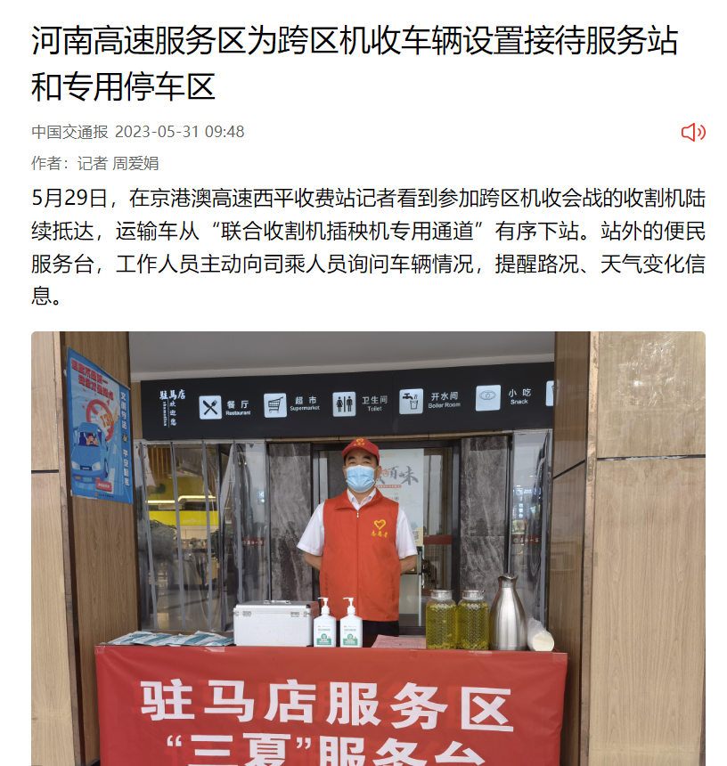 大象新聞:河南交投集團:全力做好聯合收割機跨區作業車輛服務保暢工作