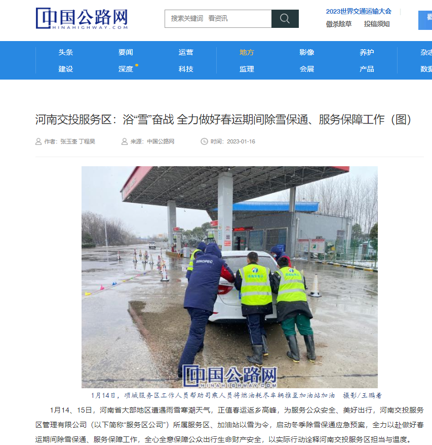 大象新聞、今日頭條、河南交通廣播:2023我的春運|白云山服務區成了司乘口中的“最美服務區”!(改)