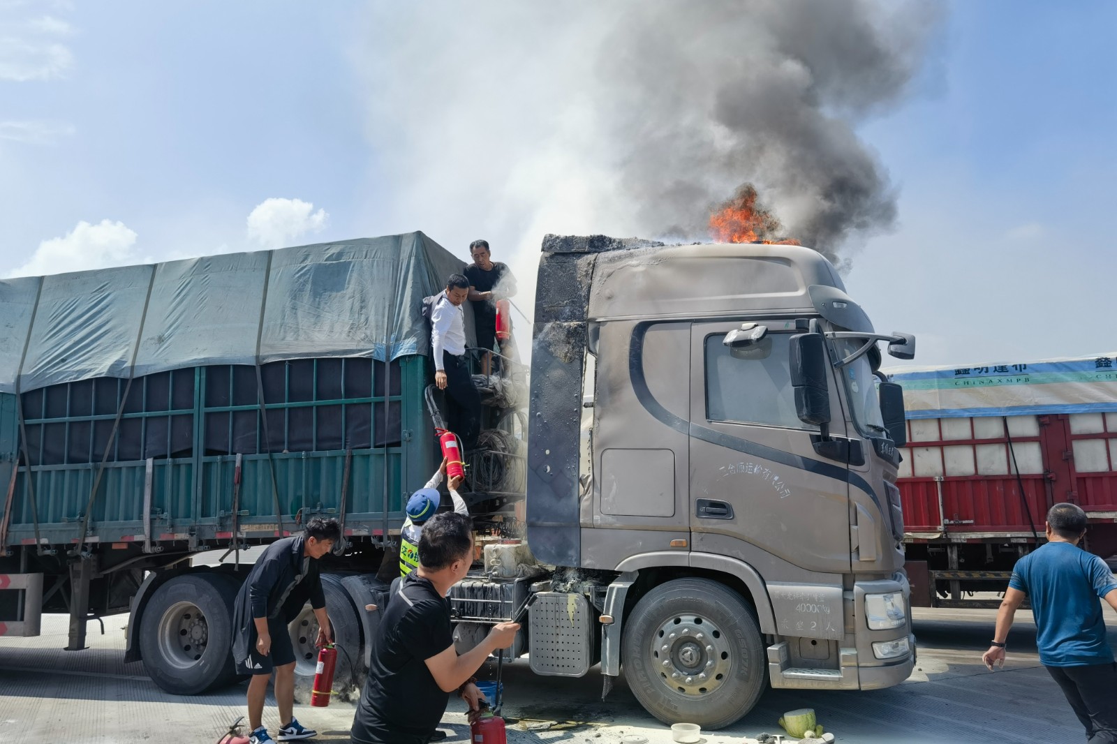 貨車自燃!中牟服務區妥善處置顯擔當