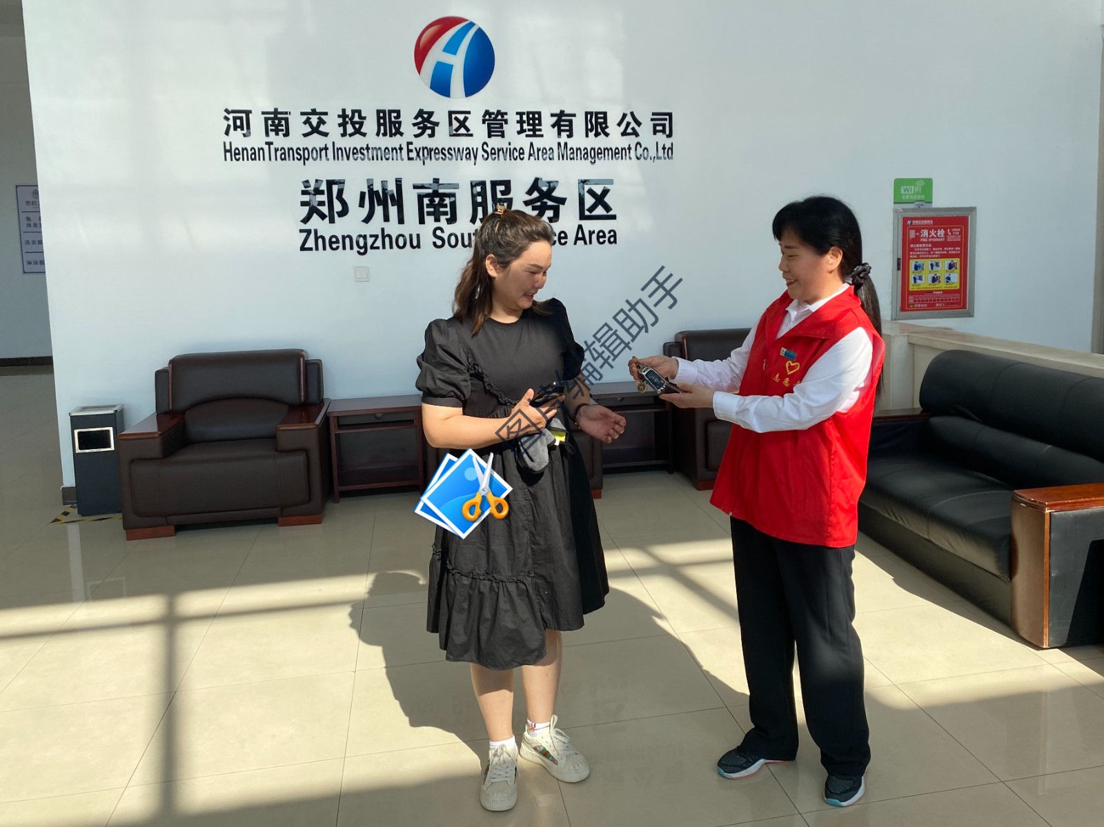 2023-08-31 作者:8月31日,鄭州南服務區一位滿頭大汗的女士急急忙忙地跑來求助,稱自己上廁所時不慎把車鑰匙掉到衛生間下水道里,工作人員了解情況后立即叫來開始尋找,經過近20分鐘20余次的嘗試成功把車鑰匙打撈上來,并沖洗干凈交還于司乘。司乘人員對服務區工作人員熱情的幫助表示真摯的感謝…